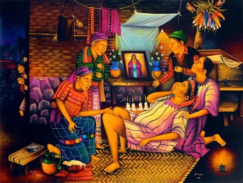 Los mayas denominaron un parto como «la hora de la muerte». Sin embargo, el nombre no era para dar mal augurio, sino para reconocer el peligro que conllevaba dar a luz. Sus creencias consideraban al parto como el combate de la madre y su bebé, quien provenía del cielo, contra los señores del inframundo para poder nacer.